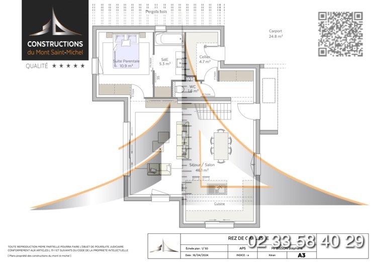 Carolles centre sur terrain de 997m2 en centre ville et proximité vallée du Lude, Projet de maison neuve de 100m2 avec suite parentale au rez-de-chaussée de chaussée, 3 chambres au total, salle salon, cellier et car port. Maison en brique, plancher chauffant et menuiseries en aluminium. Possibilité de modification de projet selon vos souhaits.