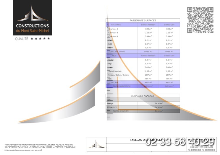 Granville proximité centre ville sur terrain de 512m2 maison T6 avec suite parentale au rez-de-chaussée et grande pièce de vie de plus de 60m2, maisons en brique, plancher chauffant aérothermie, menuiseries en aluminium.