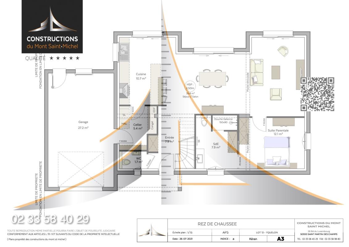 Yquelon sur terrain d'environ 500m2 situé près d'intersport dans un environnement calme et en retrait de l'axe principal maison composée de salle salon cuisine avec ilot central, suite parentale, entrée, célier et garage à l'étage 3 chambre une salle d'eau et un palier mezzanine.