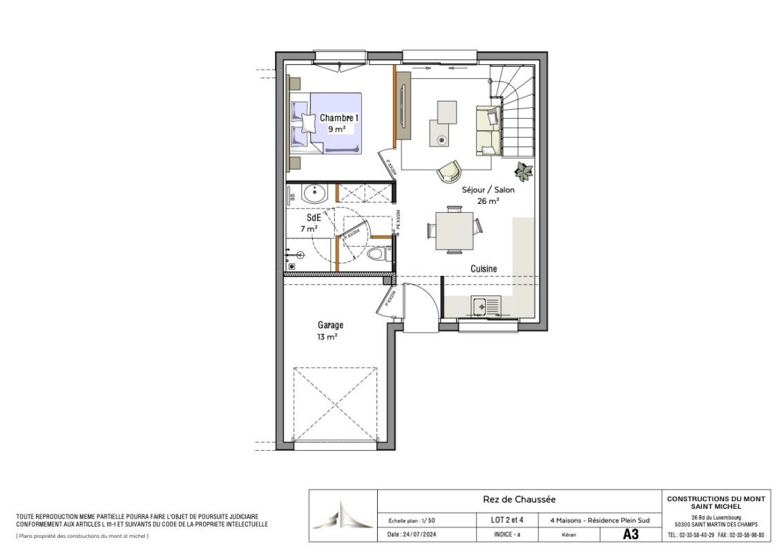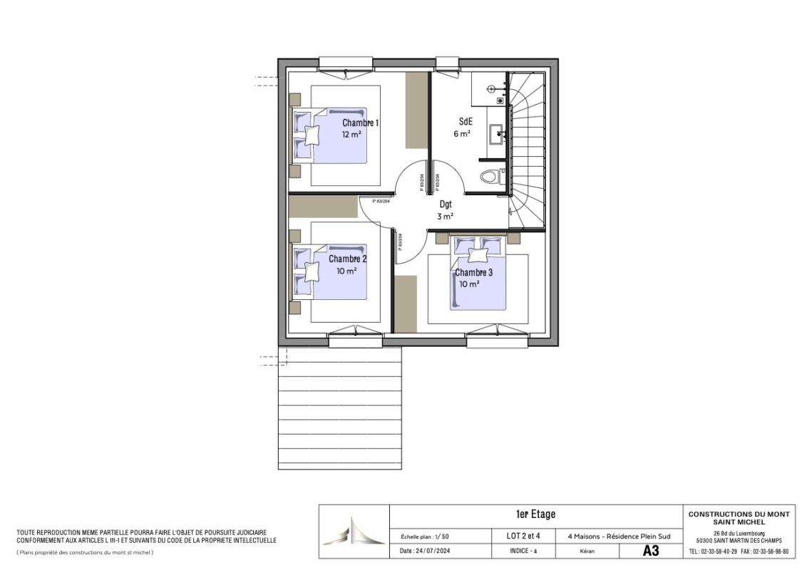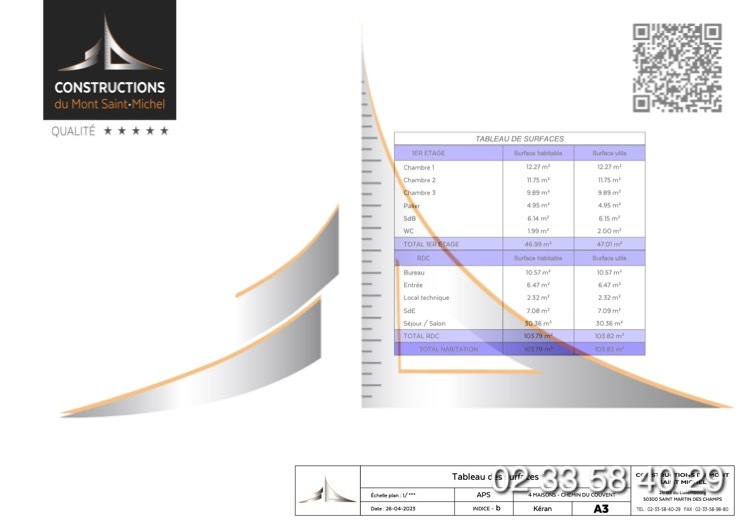 Chemin du couvent à Granville, proximité commerces, maison en VEFA de 4 chambres aux normes PMR (mobilité réduite) sur terrain de 219m2. salle salon cuisine, 2 salle de bains, garage. Plantation, clôtures, assurance dommage ouvrage et garantie de livraison compris ! normes RE 2020