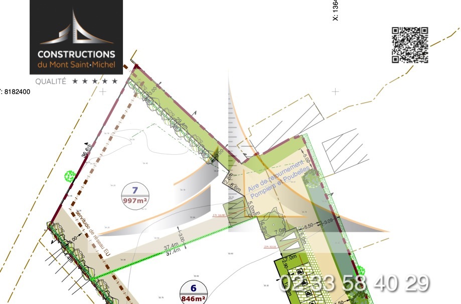 Carolles centre rare à la vente sur terrain de 997 projet de maison neuve de 222m2 plus garage. exemple de projet à modifier selon vos souhaits, construction en brique, chauffage géothermie verticale avec planchers chauffants, menuisières aluminium, volets roulant électrique, domotique, RE2020, haut niveau de qualité thermique.