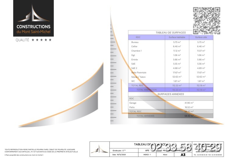 Projet de maison neuve norme RE 2020 de plain pied composé de 3 chambres dont une suite parentale, volume de vie de 53m2. très beau terrain de bonne exposition. plancher chauffant aérothermie, maison en brique, menuiseries aluminium motorisées.