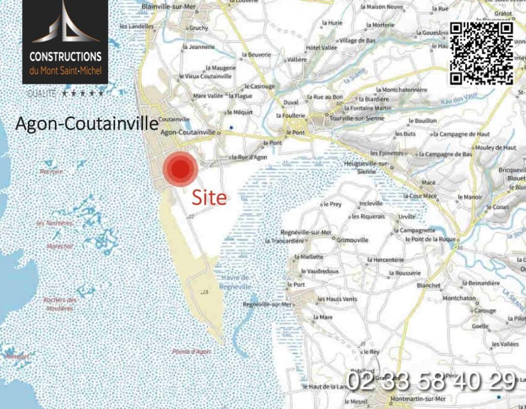 Agon coutainville, en centre ville et au bord de mer, projet de maison neuve de 3 chambres sur terrain à bâtir de 393 m2 viabilisé, possibilité extension avec une suite parentale et/ou garage plus cellier. Prix maison partie centrale et terrains hors frais de notaire sur terrain.